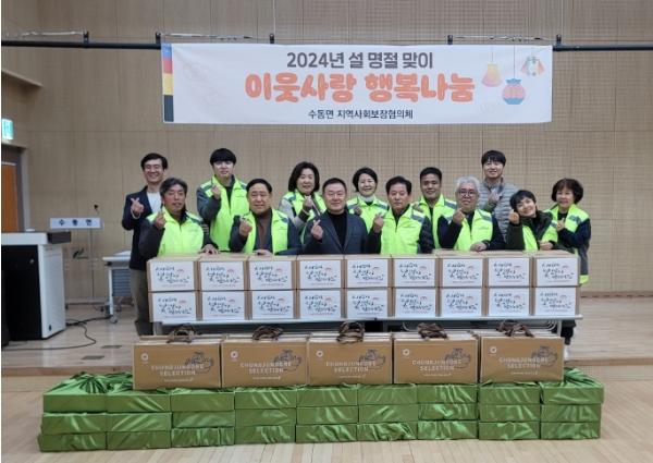 수동면 지역사회보장협의체 신야균 위원장은 “설을 맞아 우리 이웃과 마음을 나눌 수 있는 시간을 가져 기쁘다.”라며“앞으로도 우리 이웃을 한 번 더 돌아보고 나눔에 앞장서도록 노력하겠다.”라고 전했다.