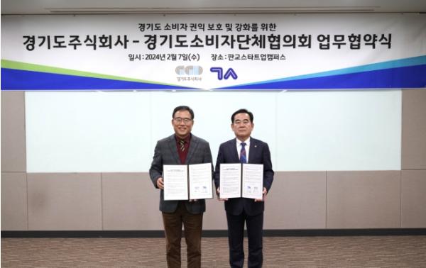 [한국뉴스타임=편집국] 경기도주식회사가 경기도민의 소비자 권익 보호와 강화를 위해 7일 경기도 성남시 판교스타트업캠퍼스에서 경기도소비자단체협의회와 함께 ‘경기도 소비자 권익 보호 및 강화를 위한 업무협약(MOU)’를 체결했다.