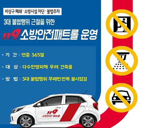 소방안전패트롤은 지난 충북 제천 화재, 동탄 메타폴리스 상가 화재, 의정부 대봉그린 화재 등 불법행위로 인한 다수 사상자 발생 및 화재 피해 확산을 예방하기 위해 화재 안전저해 불법행위를 집중 단속하고자 운영되고 있다.