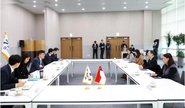 [한국뉴스타임=편집국] 김현곤 경기도 경제부지사는 7일 경기도청에서 싱가포르 스마트네이션디지털정부청(SNDGO, 이하 스마트네이션청) 어거스틴 리 사무2차관과 만나 경기도와 싱가포르 간 인공지능(AI)·데이터 분야 정책협력과 우호협력 활성화 방안을 모색했다.