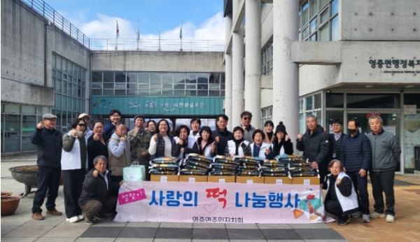 이날 영중면 주민자치회 위원들은 준비한 떡국떡 450kg을 마을 경로당 20개소, 영중파출소, 영중창수면대, 영중119안전센터, 양문서울의원에 새해 인사와 함께 전달했다. 또한, 이날 위원들은 취약계층 20가구를 대상으로 ‘사랑의 쌀 나눔 행사’도 함께 진행했다.