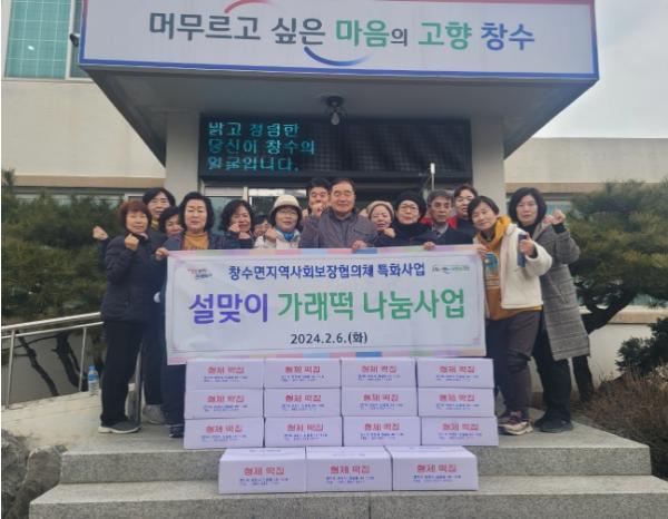창수면 지역사회보장협의체는 지난해 바자회를 통해 마련한 기금으로 15말의 가래떡을 만들었다. 보장협의체 위원들은 만든 가래떡을 라면, 쌀 등 후원물품과 힘께 더해 창수면 15개 리 마을에 전달했다. 물품을 전달받은 대상가구는 고마움을 표했다.