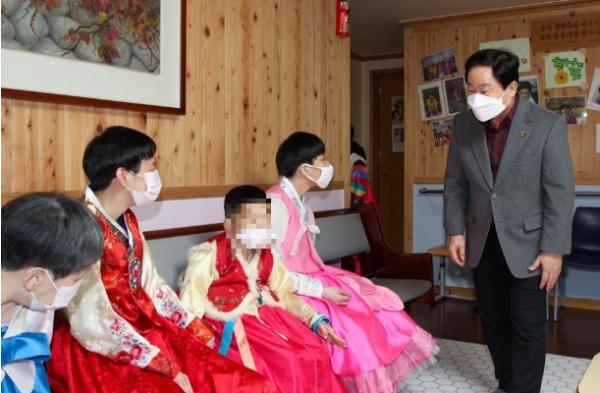 이날 주광덕 시장은 각각 진접읍·오남읍에 소재한 노인복지시설 ‘사랑의 쉼터’(시설장 김진태)와 장애인 거주 시설 ‘천사의 집’(시설장 강경하)을 방문해 입소자들을 격려하고 소통하는 시간을 보냈다.