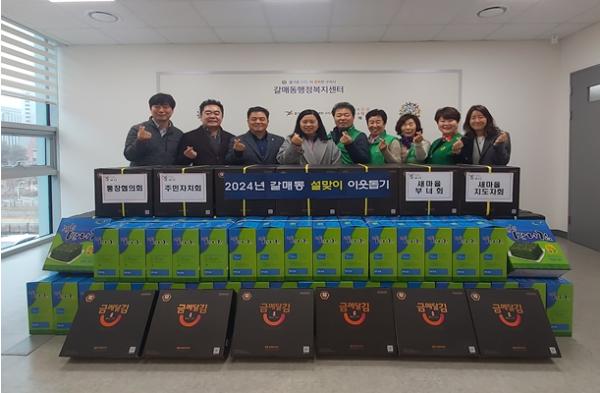 [한국뉴스타임=편집국] 구리시 갈매동 행정복지센터는 지난 7일 갈매동 기간단체와 함께 설맞이 이웃돕기 물품 합동 전달식을 진행했다.