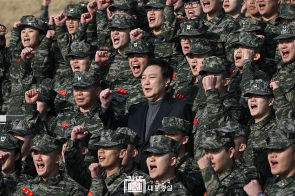 [한국뉴스타임=편집국] 윤석열 대통령은 2월 10일 오후 청룡의 해 설명절을 맞아 해병 청룡부대(2사단)를 방문해 군사대비태세를 점검하고, 최전방에서 빈틈없이 경계작전에 매진하고 있는 장병들의 노고를 치하했다.