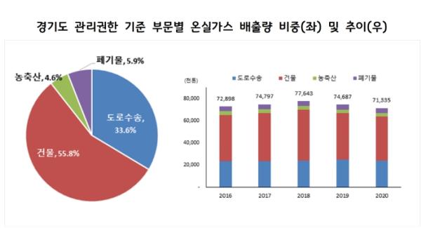 또한 경기도 관리 권한 배출량(지자체에 관리 권한이 있는 비산업 부문 배출량)에서 건물이 차지하는 비중은 55.8%(가정 27.2%, 상업공공 28.7%), 도로 수송이 차지하는 비중이 33.5%에 달하나, 현재 인벤토리에서는 상세 배출원을 확인할 수 없어 배출량을 기반으로 한 정책 수립과 정책효과 환류에 어려움이 있는 것으로 나타났다.