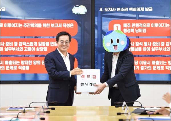 주간업무보고서와 관련해 김동연 지사는 “부득이한 경우를 빼고는 보고서를 작성하지 말자. 꼭 필요하면 제목과 핵심만 나오게끔 해서 짧게 작성해달라. 기후변화 대응 차원에서도 종이 없이 하도록 하자”고 말했다.
