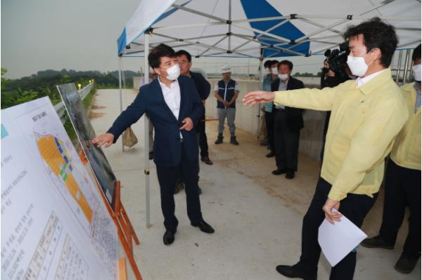 김종천 시장은 현장에서 경기도, 화성시, 한국농어촌공사 등 관계기관 참석자와 약 1시간 동안 현장을 둘러봤다.