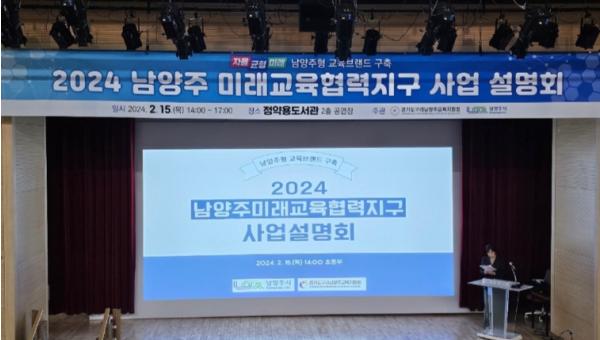 [한국뉴스타임=편집국] 남양주시는 지난 15일 구리남양주교육지원청과 정약용도서관에서 학교 대상‘2024 남양주미래교육협력지구 사업설명회’를 개최했다.
