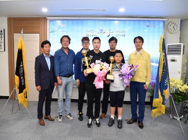 이날 김상호 시장은 구본채 하남시체육회장과 함께 동부초 김병준 선수, 남한중 박범환 선수를 비롯한 감독, 코치 등 6명을 초청해 우승 트로피와 꽃다발을 전달했다.