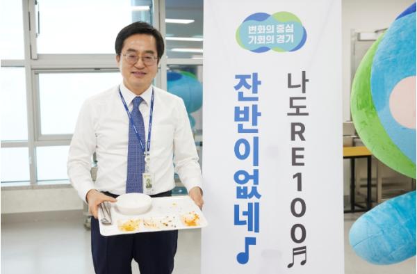 김 지사는 “경기도 구내식당은 하루에도 수백 명 이상, 약 1천 명 이상이 식사를 하는 곳”이라며 “오늘부터 ‘잔반 없애기’ 캠페인을 벌이는데 제가 1호 도전자로 시도를 했고 잔반 없이 식판을 비웠다”고 말했다.
