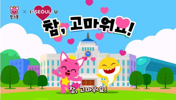 [KNT한국뉴스타임] ‘아기상어 뚜루루뚜루~’ 익숙한 멜로디의 주인공. 서울시 홍보대사이자, 글로벌 인기 캐릭터 아기상어, 핑크퐁이 서울시와 함께 코로나19를 이겨내기 위해 노력하는 시민들을 응원하기 위한 음원과 영상을 만들었다.