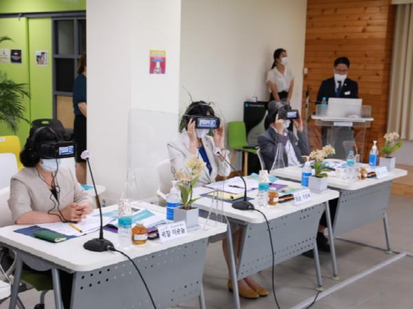VR면접훈련은 100% 실사기반으로 만들어져 이용자의 답변과 행동에 가상 면접관이 반응하는 방식이다. 경력단절여성들이 비대면 채용 방식을 체험하고 대비할 수 있는 서비스를 제공하고 있다.