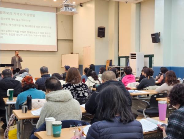 각 과정은 매월 복지관 연간 교육 일정에 따라 실시되며 △장애의 이해 △자립생활과 활동 지원의 이해 △응급상황과 대처 방법 등 장애인활동지원사로 활동하는 데 있어 실질적으로 필요한 교육으로 구성됐다.