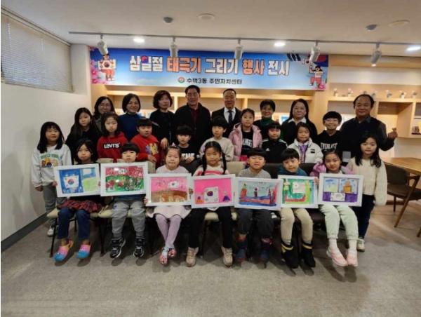 이번 행사는 어린이들에게 태극기에 담긴 뜻을 정확하게 알리고, 나라의 상징인 태극기를 사랑하고 자랑스럽게 여기도록 하고자 기획됐으며, 수강생들이 그린 태극기 그림은 오는 3월 22일까지 약 4주간 수택3동 주민자치센터 가온누리쉼터(3층)에 전시될 예정이다.