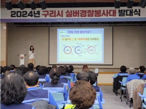 [한국뉴스타임=편집국] 구리시는 23일 노인복지관 3층 강당에서 실버경찰봉사대원 250명을 대상으로 치매 예방 및 치매파트너 교육을 진행했다.