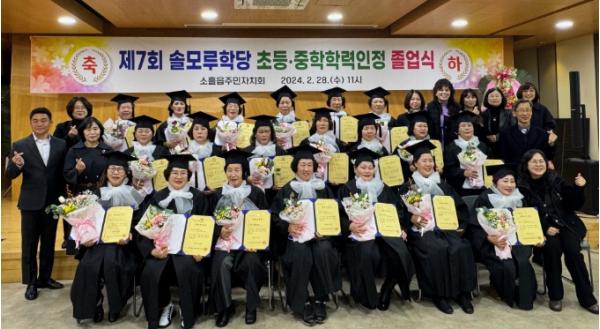 김상혁 주민자치회장은 “누구보다 열심히 학업을 펼친 여러분의 초·중등 학력 취득과 졸업을 진심으로 축하드린다. 앞으로도 배움을 희망하는 분들이 찾아오실 수 있도록 솔모루학당 운영에 최선을 다하겠다”고 말했다.