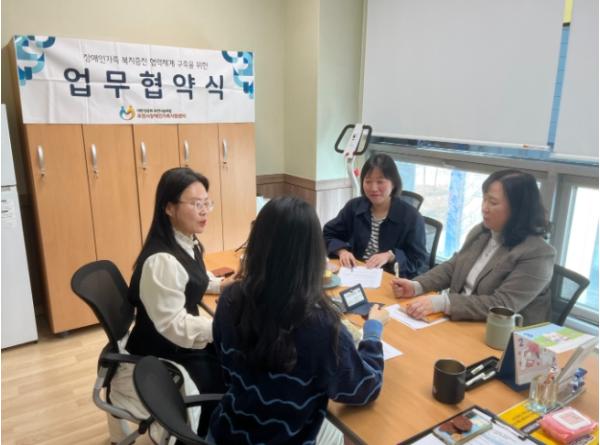 이날 업무협약에는 뭉클심리지원센터(신미경 센터장)와 우리심리상담센터(김현화 센터장)가 함께했으며, 위기 장애인 가구 발굴 및 사례 연계, 상담이 필요한 개인 및 가족 상담 연계, 성인 장애인 심리지원서비스 제공기관 역할 수행 등을 협약한 뒤 간담회를 통해 사업에 대한 논의를 이어갔다.