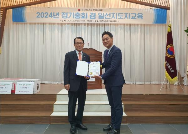 [한국뉴스타임=편집국] 경기도의회 건설교통위원회 소속 오석규 의원(더불어민주당, 의정부4)이 대한노인회 의정부지회 행사에 참석해 대한노인회로부터 표창장을 받았다.