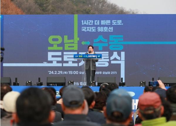 경기도는 2월 29일 오후 3시 팔현교차로에서 국지도98호선 오남~수동 도로개설 개통식 행사를 진행했다.