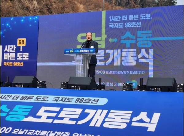 이어 “국지도 98호선 오남~수동 구간을 지나면서 아름다운 오남호수의 경관을 즐길 수 있다”고 말하며, “이번 오남~수동 구간 개통으로 오남 지역의 인적·물적 교류가 활발해져 더 활기차고 잘 사는 동네가 될 것이다”고 전했다.