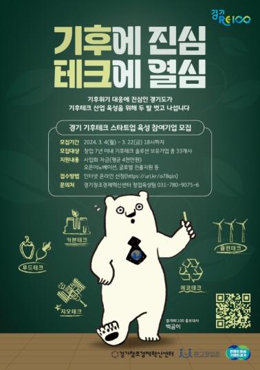 기후테크란 온실가스 감축 기술, 기후변화적응에 기여하는 기술을 말한다. 기후테크 스타트업 육성 사업은 기후 위기 대응과 지속 가능한 경제 발전에 기여하기 위해 2026년까지 기후테크 분야 우수 스타트업 100개 사를 육성하는 것을 목표로 한다. 도는 올해 '기후테크 스타트업 육성 사업'을 통해 총 33개 기업을 선발할 예정이다.