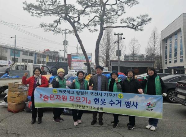 이날 행사에는 가산면 각 리 부녀회장 19명이 참여했으며, 마을 거리와 가정에서 사용하지 않는 헌 옷, 이불, 신발 등을 수거하며 재활용을 독려하고 깨끗한 마을환경을 조성했다.