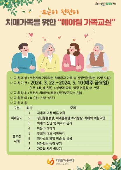 [한국뉴스타임=편집국] 포천시 치매안심센터는 오는 3월 15일까지 ‘헤아림 가족교실’ 프로그램 참여자를 모집한다.
