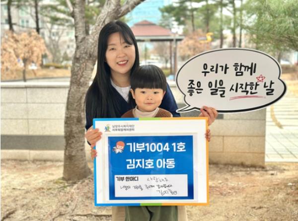 [한국뉴스타임=편집국] 남양주시 사회복지관 서부희망케어센터는 올해 나눔문화 확산을 위한‘기부1004 프로젝트’를 시작해 첫 번째 가입자로 최연소 참여자 김지호 어린이(만3세)의 이름을 올렸다.
