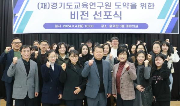 [한국뉴스타임=편집국] 경기도교육연구원은 2024년 3월 4일 오전 10시 연구원 대회의실에서 새로운 도약을 위한 비전 선포식을 개최했다. 이번 행사는 오해석 이사장을 비롯한 연구원 임직원 약 50여 명이 참석했다.