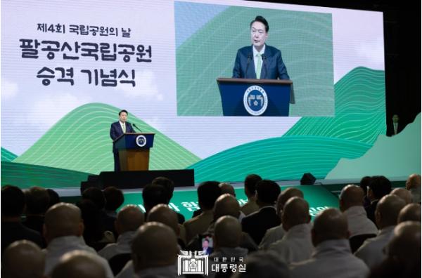 [한국뉴스타임=편집국] 윤석열 대통령은 3월 4일 대구에서 열린 '팔공산 국립공원 승격 기념식'에 참석했습니다. 이번 행사는 제4회 국립공원의 날 기념식을 겸해 마련됐다. 국립공원의 날은 국립공원의 가치에 대한 국민적 관심을 고취하고 국립공원의 의미를 새롭게 조명하기 위해 제정됐다. 1987년 국립공원공단이 설립돼 국립공원에 대한 체계적인 관리가 시작된 이래 국립공원 관련 행사에 대통령이 참석한 것은 이번이 처음이다.