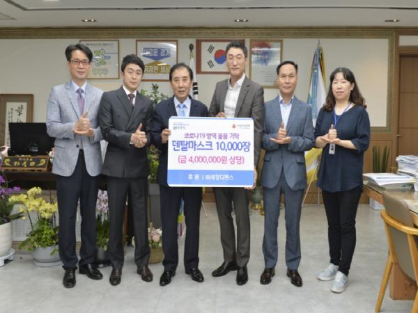 [KNT한국뉴스타임=포천] 포천시 어룡동 소재 ㈜세정디펜스(대표 손영호)는 지난 27일 코로나19 예방을 위한 덴탈마스크 1만 장(4백만 원 상당)을 포천시에 기탁했다.
