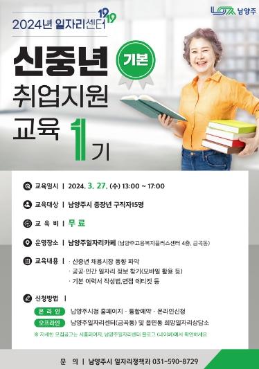 [한국뉴스타임=편집국] 남양주시는 오는 3월 27일 중장년 구직자를 대상으로‘신중년 취업 지원 교육(기본) 1기’를 운영한다.