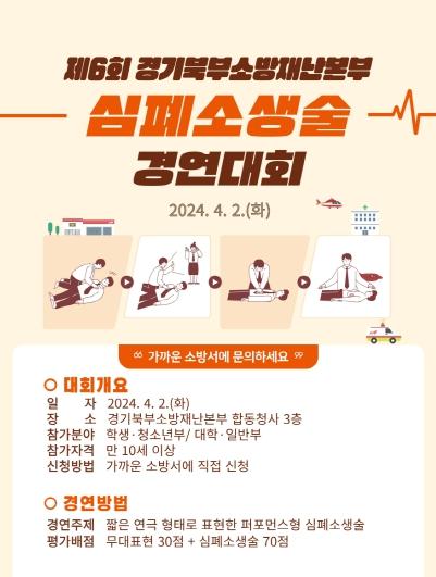 [한국뉴스타임=편집국] 경기도북부소방재난본부가 도민들의 심폐소생술에 대한 관심과 이해도를 높이기 위해 오는 4월 2일 북부소방재난본부 합동청사에서 심폐소생술 경연대회를 연다.