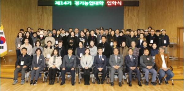 [한국뉴스타임=편집국] 경기도농업기술원은 6일 농업기술원 농업과학교육관에서 경기도농업기술원장, 농업대학 신입생, 총동문회 임원 등 90명이 참석한 가운데 제14기 경기농업대학 입학식을 개최했다.