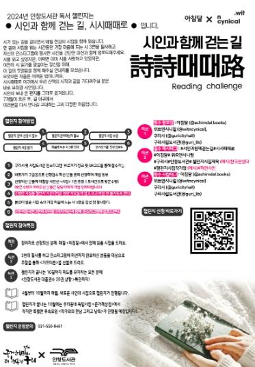 아울러, 지역민의 독서 일상화를 장려하고 시 읽기에 대한 막연한 두려움을 가진 독자들의 시적 모험을 함께 할 안내자로 ‘유희경 시인’이 참여해 챌린지의 시작과 끝을 응원할 예정이다.