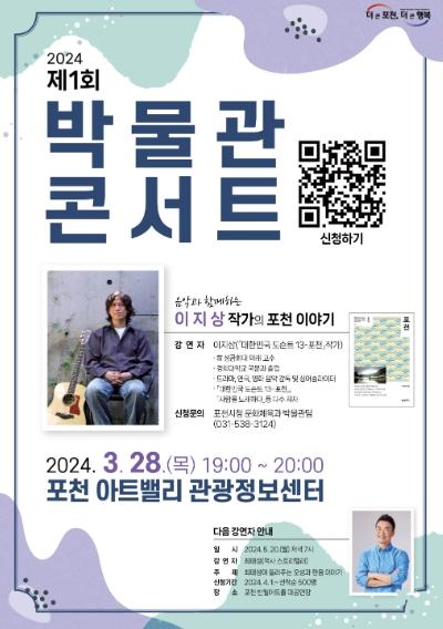2024년부터 새롭게 시작되는 제1회 박물관 콘서트는 이지상 작가를 초청해 ‘음악과 함께하는 이지상 작가의 포천 이야기’라는 주제로 강연과 공연을 진행한다.