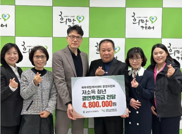 [한국뉴스타임=편집국] 지난 6일 남양주시 북부희망케어센터 운영위원회는 저소득 청년의 국가대표 꿈을 응원하고자 위원들이 십시일반 모은 480만원을 남양주시 북부희망케어센터에 전달했다.