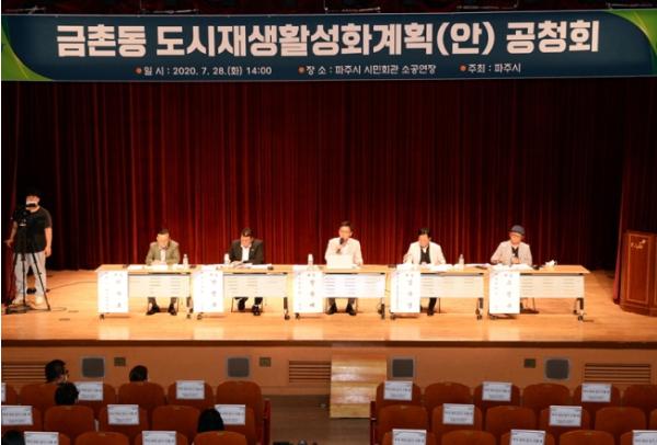 [KNT한국뉴스타임] 파주시는 지난 28일 오후 2시부터 4시까지 파주시 시민회관 소공연장에서 ‘파주시 금촌동 도시재생 활성화계획 공청회’를 개최했다.