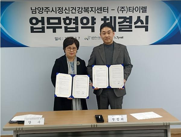 이번 협약식에는 양수 남양주시정신건강복지센터장, 장창희 ㈜타이렐 대표, 손정자 시의원, 정태식 남양주보건소장 등이 참석했다.