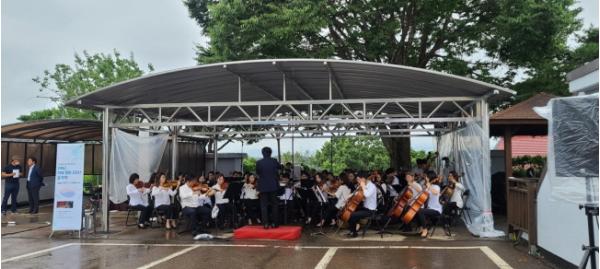 [KNT한국뉴스타임] 파주의 민간인통제구역 내 장단지역 주민들이 지난 27일 장단출장소 앞 광장에서 독일 훼텐슬레벤 마을과 ‘DMZ, 미래평화 100년 Untact 음악교류’를 위한 첫 공연을 진행했다.