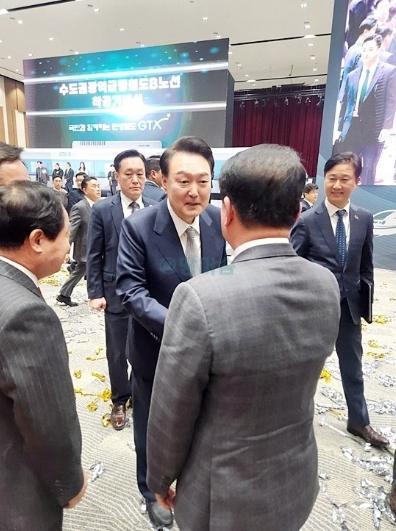 [한국뉴스타임=편집국] 백경현 구리시장은 지난 7일 인천 연수구 송도국제도시 컨벤시아에서 열린 수도권 광역급행철도(GTX) B노선 착공 기념식에 참석해, 윤석열 대통령과의 인사 자리에서 GTX-B 갈매역 정차를 건의했다고 밝혔다.