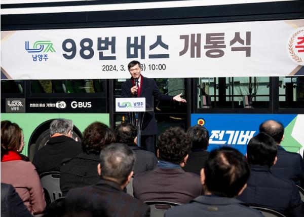 김현택 의장은 축사를 통해“오남과 수동지역을 잇는 98번 버스의 개통은 두 지역의 발전과 교통소외지역 주민들의 이동권 보장에 큰 도움이 될 것”이라며“그간 힘쓰신 노고에 감사드리며 앞으로의 성공적인 운행을 기대한다”고 밝혔다.