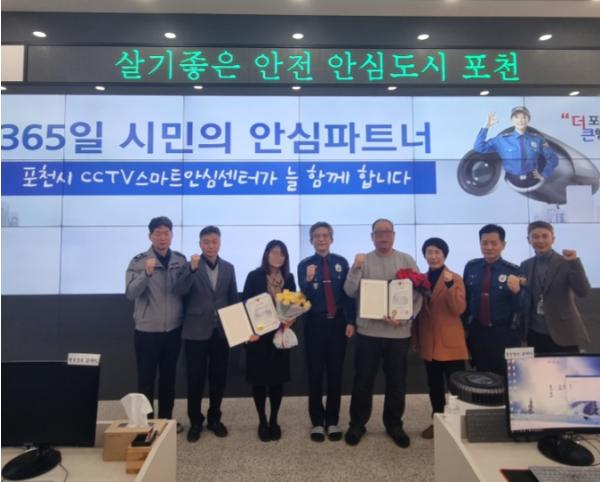 [한국뉴스타임=편집국] 포천시는 8일 포천시 CCTV스마트안심센터 관제요원 2명이 포천경찰서장으로부터 감사장을 수여받았다고 밝혔다.