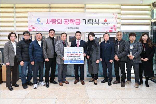 [한국뉴스타임=편집국] 선단동 행정복지센터에서는 지난 8일 선단희망나무회에서 상급학교로 진학하는 관내 저소득 아동 및 청소년을 돕기 위한 사랑의 장학금 1천 4백여만 원을 기탁했다고 밝혔다.
