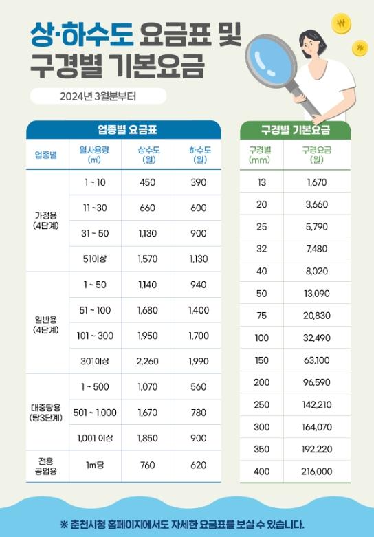 자세한 내용은 춘천시청 공식 누리집(과 수도 요금 전용 누리집에서 확인하면 된다.