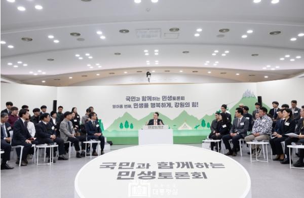 [한국뉴스타임=편집국] 윤석열 대통령은 3월 11일 오전 강원특별자치도청에서 ‘민생을 행복하게, 강원의 힘!’을 주제로 열아홉 번째 ?국민과 함께하는 민생토론회?를 개최하고, 강원의 미래를 열어갈 첨단산업과 관광산업 등 발전 과제에 대해 논의했다.