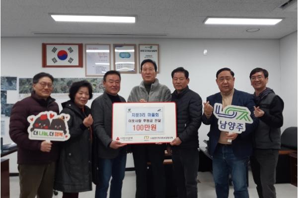 [한국뉴스타임=편집국] 남양주시 수동면사무소는 12일 수동면 지둔3리 마을회에서 어려운 이웃을 위한 후원금 100만원을 경기사회복지공동모금회를 통해 수동면에 지정 기탁했다.