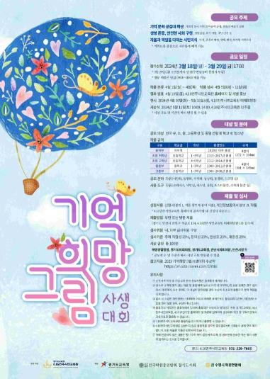 4.16민주시민교육원은 오는 18일부터 29일까지 유·초·중·고등학생과 동일 연령대 학교 밖 청소년을 대상으로 ‘2024 기억 희망 그림 사생대회’를 개최한다고 밝혔다.