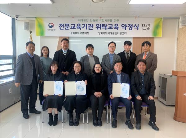 [한국뉴스타임=편집국] 국가보훈부 경기북부보훈지청 제대군인지원센터(센터장 김성옥)와 4개 전문교육기관(경복대학교 평생교육대학, 대양전기직업전문학교, 북부신진중장비직업전문학교, 파주건설평생교육원)은 3월 14일 경기북부제군지원센터 회의실에서 ?’24년도 제대군인 전문교육기관 위탁교육과정?에 대한 약정서를 체결하고 제대군인 맞춤형 전문직업교육 훈련 및 취업 지원에 대한 상호 협력을 약속했다.